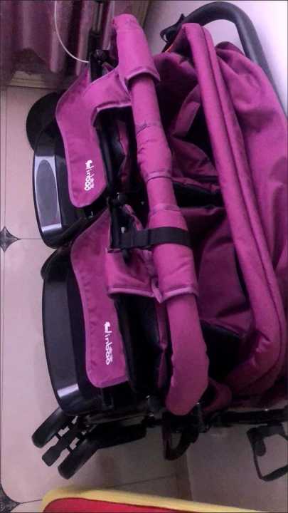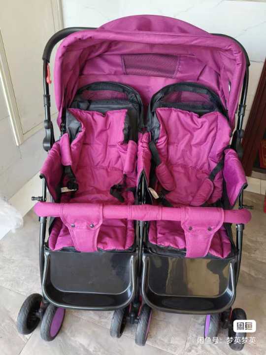 红色双胞胎婴儿推车!全新未使用,可坐可躺可折叠,带...
