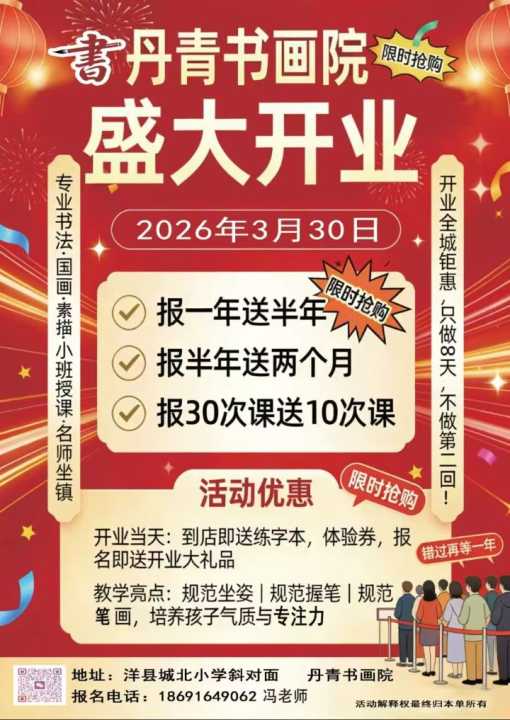 倒计时3天!福利拉满丹青书画院3月30日盛大开业 报一...